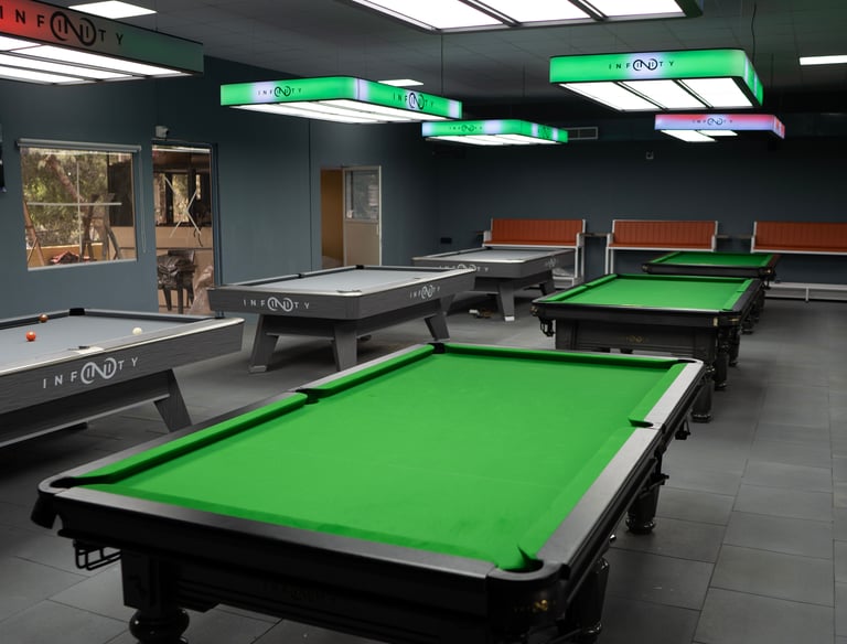 the ultimate destination for cue sport lovers. Whether you're here to chill with friends or compete like a pro, we offer a high-end gaming atmosphere with top-quality tables and an unbeatable vibe.